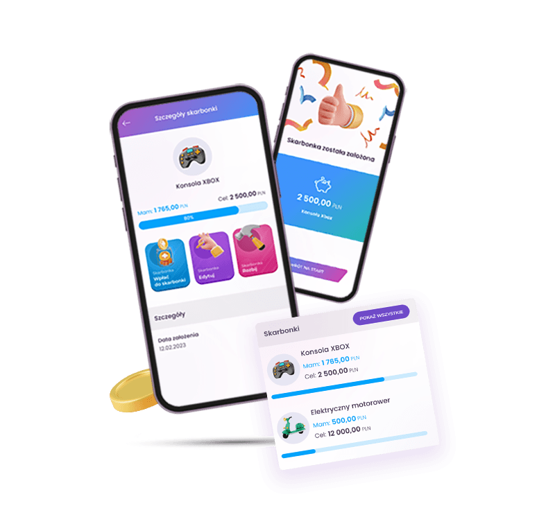 Dla tych, którzy chcą regularnie oszczędzać, funkcja przelewów cyklicznych „KIESZONKOWE” pozwala ustawić regularne wpłaty na dowolne określone przez siebie cele. Ponadto EBO Mobile Junior umożliwia młodym klientom banku tworzenie “SKARBONEK” z możliwością personalizacji nazwy, co pomaga w oszczędzaniu na ulubione rzeczy czy ważne wydarzenia.